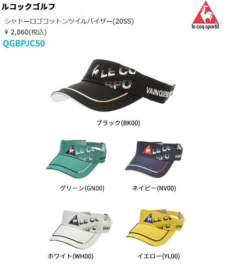ルコックゴルフ シャドーロゴコットンツイルバイザー QGBPJC50 メンズ 帽子 フリーサイズ 2020年モデル (即納)