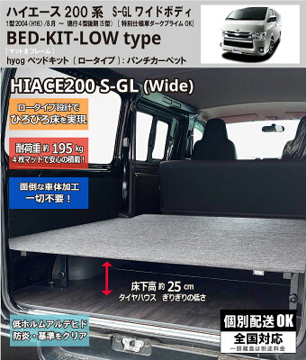 ハイエースベッドキット 荷室棚 ロータイプ(低床) 200系 ワイドS-GL用 パンチカーペット【高さ25cmから35cmまで】