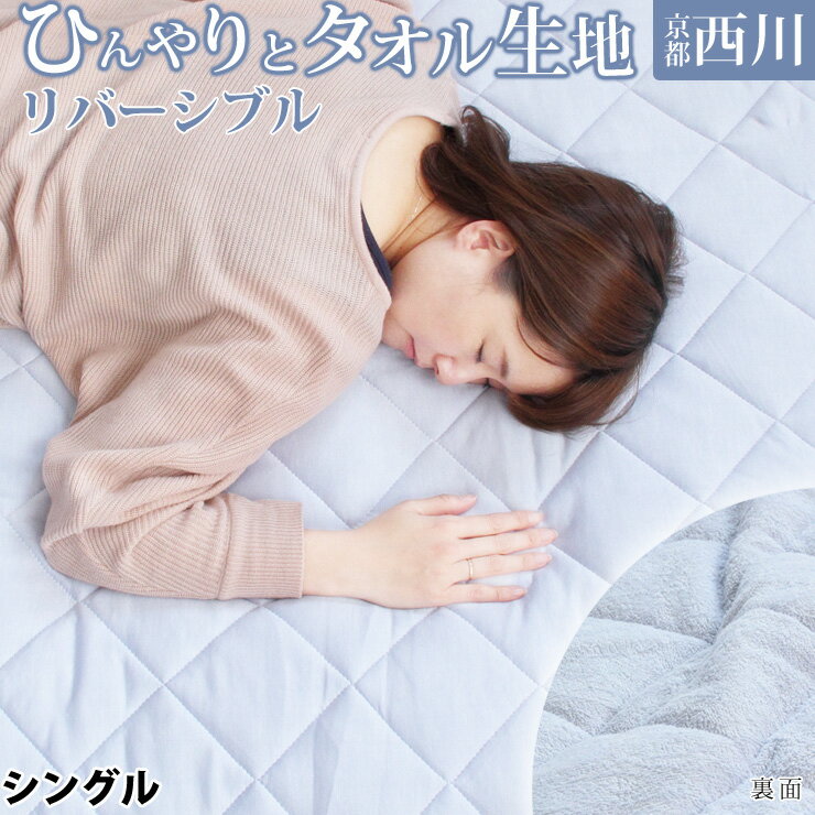 敷きパッド シングル リバーシブル 西川 接触冷感&タオル地 ひんやりと吸汗 両面使えるパイル 綿100% 涼感 京都西川 ベッドパッド