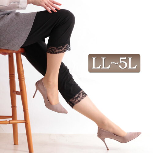 大きいサイズ レディース ボトムス ボトム パンツ クロップドパンツ レギンスパンツ レギパン ズボン 七分丈 7分丈 レース 裾レース 伸縮 伸びる ウエストゴム ウエストリブ ゴム 無地 black ブラック 黒 レース XL LL LLサイズ XXL 2L 3L 4L 5L 13号 15号 17号 19号 秋¬
